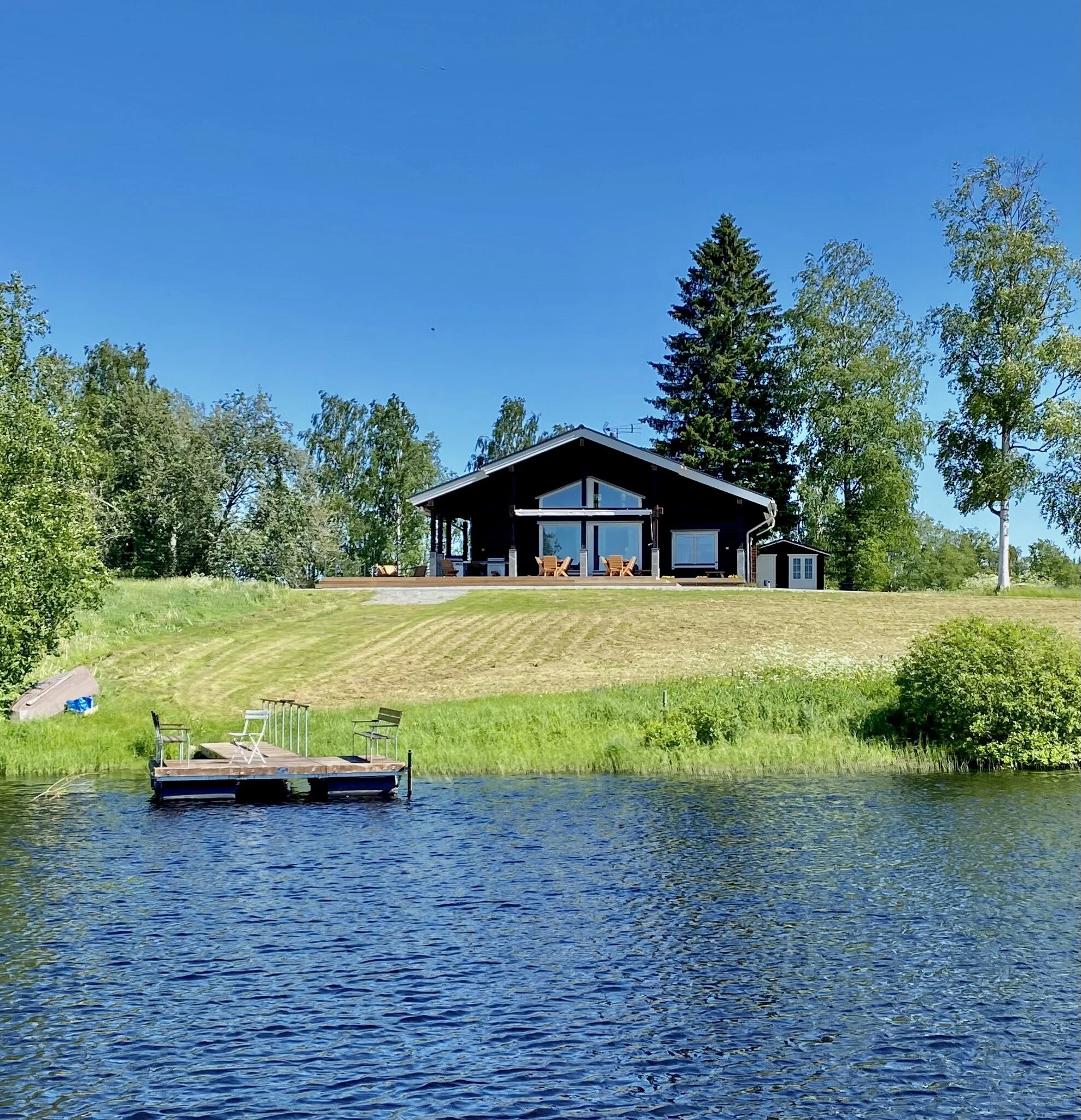 Suurelta terassilta avautuvat järvimaisemat, ja grillillä valmistuvat kesäiset ateriat helposti. Laiturilta pääset suoraan virkistävälle uinnille.