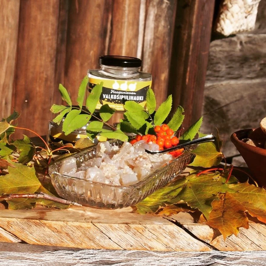 Haapaniemen valkosipulihauki on persoonallinen paikallistuote, joka soveltuu erinomaisesti pikantiksi tuliaiseksi juhlapöytään, ja sitä voi soveltaa myös ruuanlaitossa. Voit myös nauttia haukea esimerkiksi tuoreen ruisleivän päällä tai sellaisenaan. Olitpa sitten mitä mieltä hyvänsä, takaamme, että kokemus ei jätä ketään kylmäksi. Tämä hauki ei kahlaa haaleassa vedessä. Koe graavisuolatun hauen sekä kotimaisten sipulikasvien marinoima harmonia!
